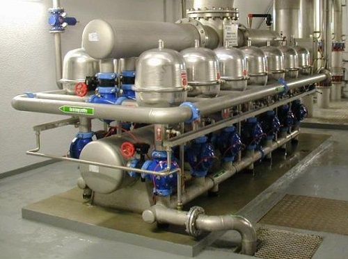 精密過濾器一般置于機械過濾器之后,要求進口水的濁度在2mg/L以下,其出水濁度可達0.3~0.1mg/L,而且不隨原水濁度波動而波動。按懸浮雜質的粒徑計,選用不同的過濾材料去除水中5、10、20、50、100μm以上的顆粒。