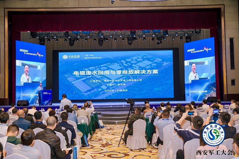 中國設備管理協會涂裝產業發展促進中心、表面處理技術委員會于2022年9月27~29日在中國·西安組織召開了“2022(第三屆)軍工裝備表面處理技術高峰論壇”,打造高品質專業學術交流會議。大會采用“主會場+分會場”模式,邀請了相關領域重量級專家與會報告探討,涉及航空航天、兵器、船舶、核電、軍工電子表面處理技術領域,深圳中拓天達環境工程有限公司(以下簡稱“中拓環境”)受邀參加。在大會期間,中拓環境總經理助理涂長壽發表了關于《電鍍廢水回用與零排放解決方案》的技術報告。